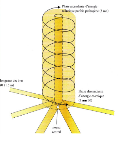 Dans tous les cas, même sur les CCT dont le taux vibratoire est élevé, il est dangereux, pour l’équilibre énergétique du corps, de séjourner au dessus et/ou dans un des bras d’une cheminée cosmo-tellurique.